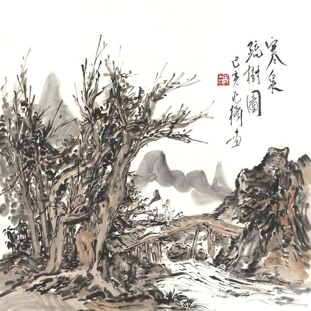 《寒泉疏樹圖 》 49cmX49cm 2019年