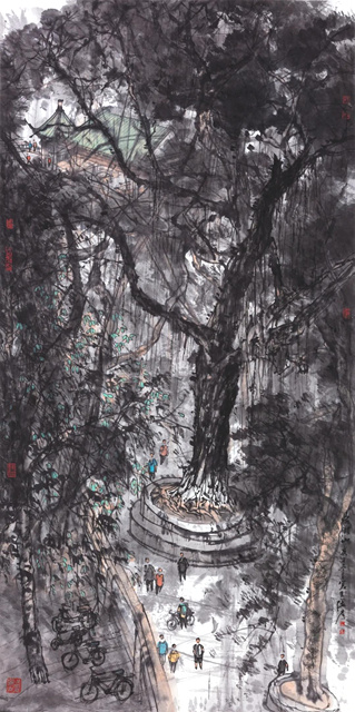 人與自然的關(guān)系,是山水畫的永恒主題。中國的山水畫,體現(xiàn)了人與自然的多種關(guān)系,是寧靜中充滿生機(jī)的自然,表現(xiàn)了有哲學(xué)高度和人文深度的詩意情懷。前人在創(chuàng)造意境與境界的過程中,積累了豐富的經(jīng)驗(yàn),體現(xiàn)了藝術(shù)地把握天人關(guān)系的辯證智慧,諸如人類與自然,造化與心源,視覺與心靈、藝術(shù)與文化,筆墨與意境,畫品與人品等等。只有把深入傳統(tǒng)與深入實(shí)踐結(jié)合起來,才能實(shí)現(xiàn)傳統(tǒng)的創(chuàng)造性轉(zhuǎn)化,使源遠(yuǎn)流長的中國山水畫在走向現(xiàn)代的創(chuàng)新中,為建設(shè)綠水青山生態(tài)文明的美麗中國,滿足人民的精神需要并對世界藝壇做出不可替代的貢獻(xiàn)。