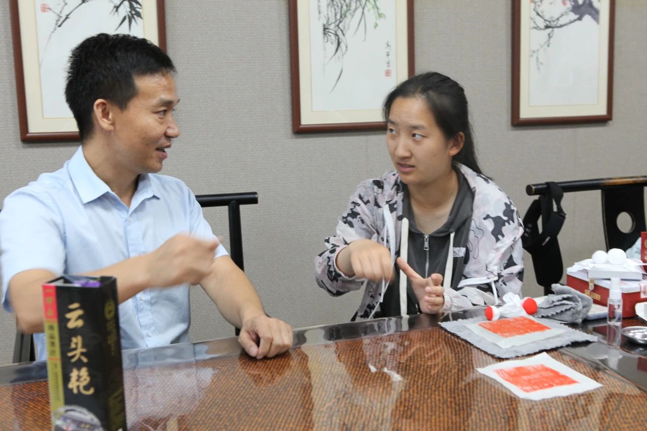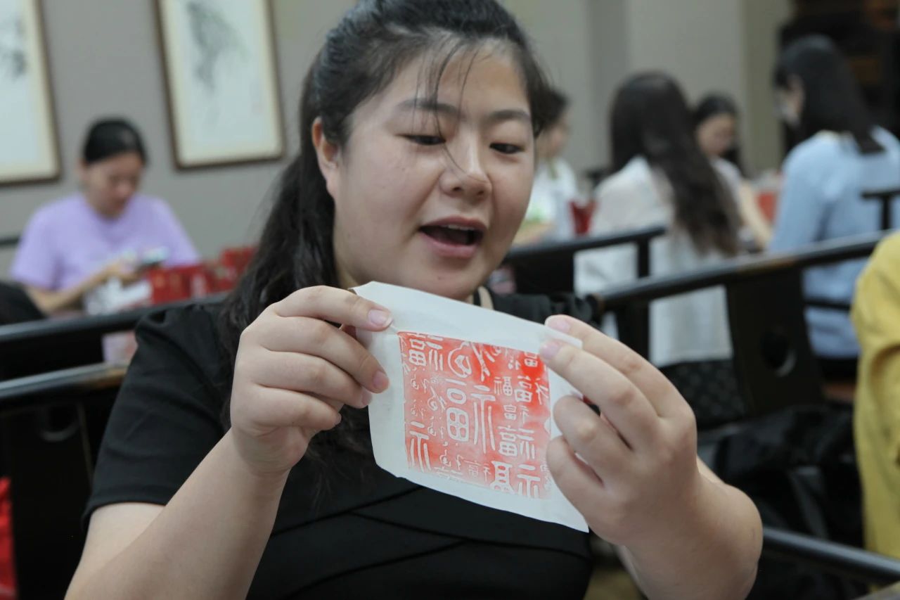 一得閣第四代首席非遺傳承人魏光耀擔(dān)當(dāng)主講人,與前來參與活動的教師和學(xué)子們暢聊墨汁創(chuàng)始品牌一得閣158年的“前世今生”,帶領(lǐng)大家體驗(yàn)中國傳統(tǒng)技能拓印活動。