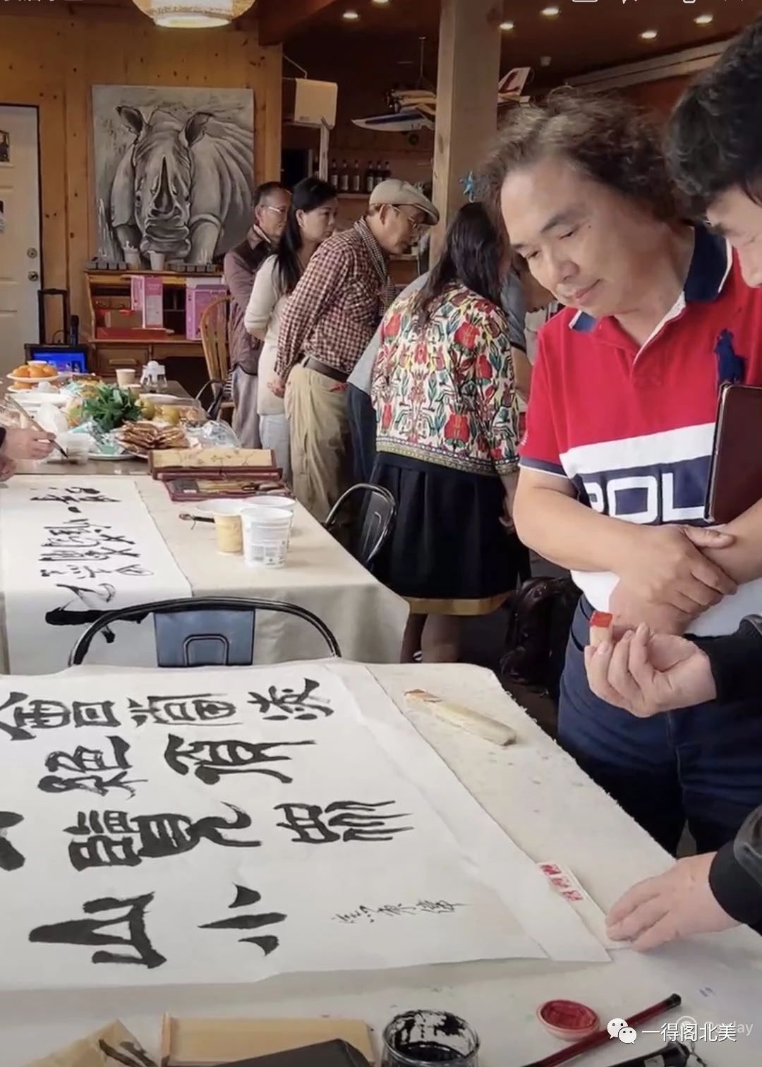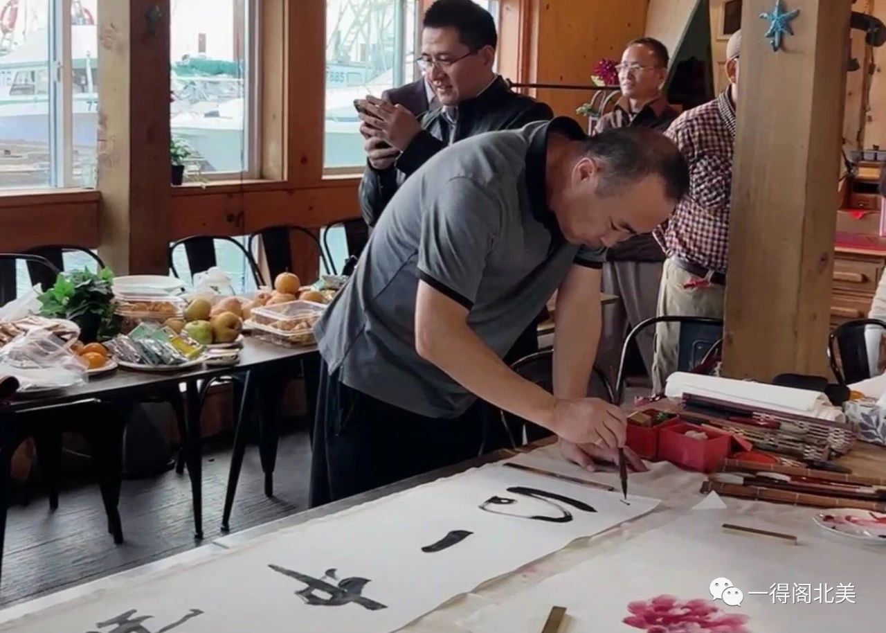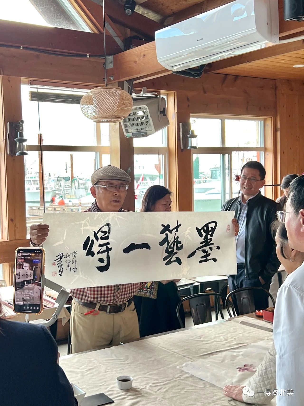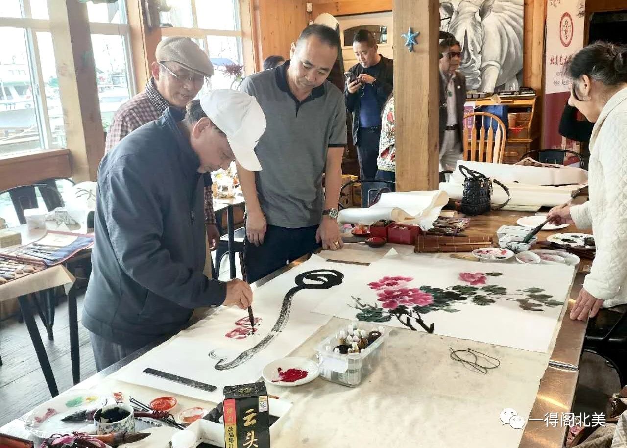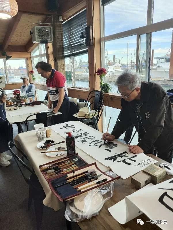 溫哥華金秋10月1日下午2:30,在列治文漁人碼頭風(fēng)景如畫的海上餐廳 The Crab King,見證了一場(chǎng)中華文化珍寶與加拿大藝術(shù)家親切相聚的藝術(shù)盛宴。這是一得閣在北美的“金秋國(guó)慶試墨筆會(huì)”,匯集了來自北美20多位的海外書畫藝術(shù)家。
