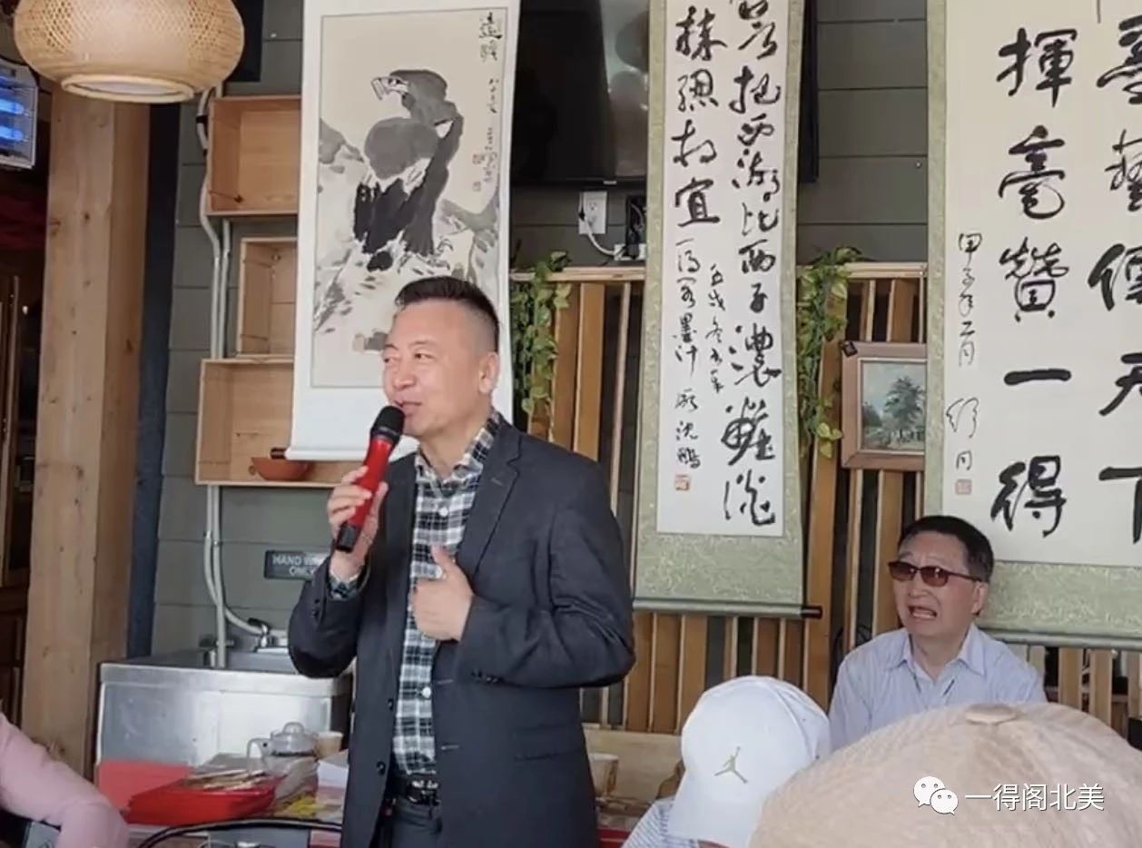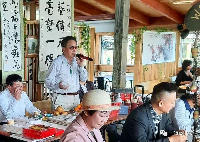 北美藝術(shù)家協(xié)會(huì)的理事長(zhǎng)張伯恩先生,和北美書畫研究院名譽(yù)院長(zhǎng)劉淑娥女士,熱情地致辭歡迎北京一得閣墨業(yè)有限責(zé)任公司總經(jīng)理馬靜榮先生,和副總經(jīng)理白冰先生的遠(yuǎn)道而來。