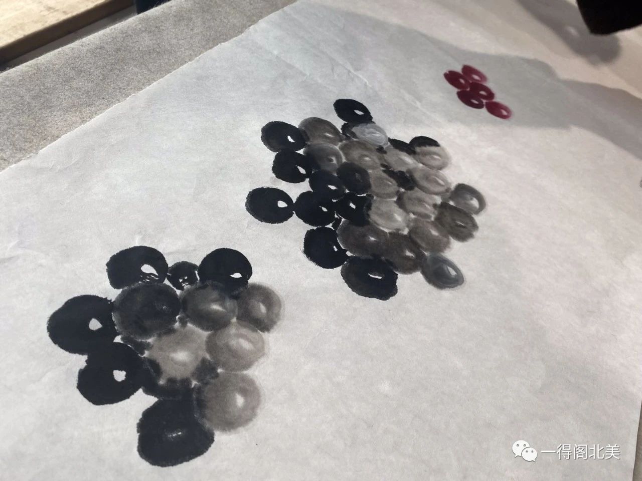 花烏畫家吳榮添分享道:“我擅長(zhǎng)畫寫意葡萄和牡丹。對(duì)于畫寫意葡萄,最難的是畫寫意水墨葡萄。過去我一直使用鐵齋翁磨制的墨汁,但總感覺有些不滿意,無法表現(xiàn)出葡萄的多層次立體效果。因?yàn)槲议L(zhǎng)期使用一得閣墨,后來我將一得閣墨倒入硯池,用鐵齋翁墨塊磨了半小時(shí),然后用磨制出的墨汁畫寫意水墨葡萄。結(jié)果畫面逐步呈現(xiàn)出多層次的濃淡、干濕等墨色,加上白色,共計(jì)六種顏色。這證明了一得閣墨汁在磨制后有五種顏色,畫出的寫意水墨葡萄具有豐富的立體感和層次感?!?nbsp;