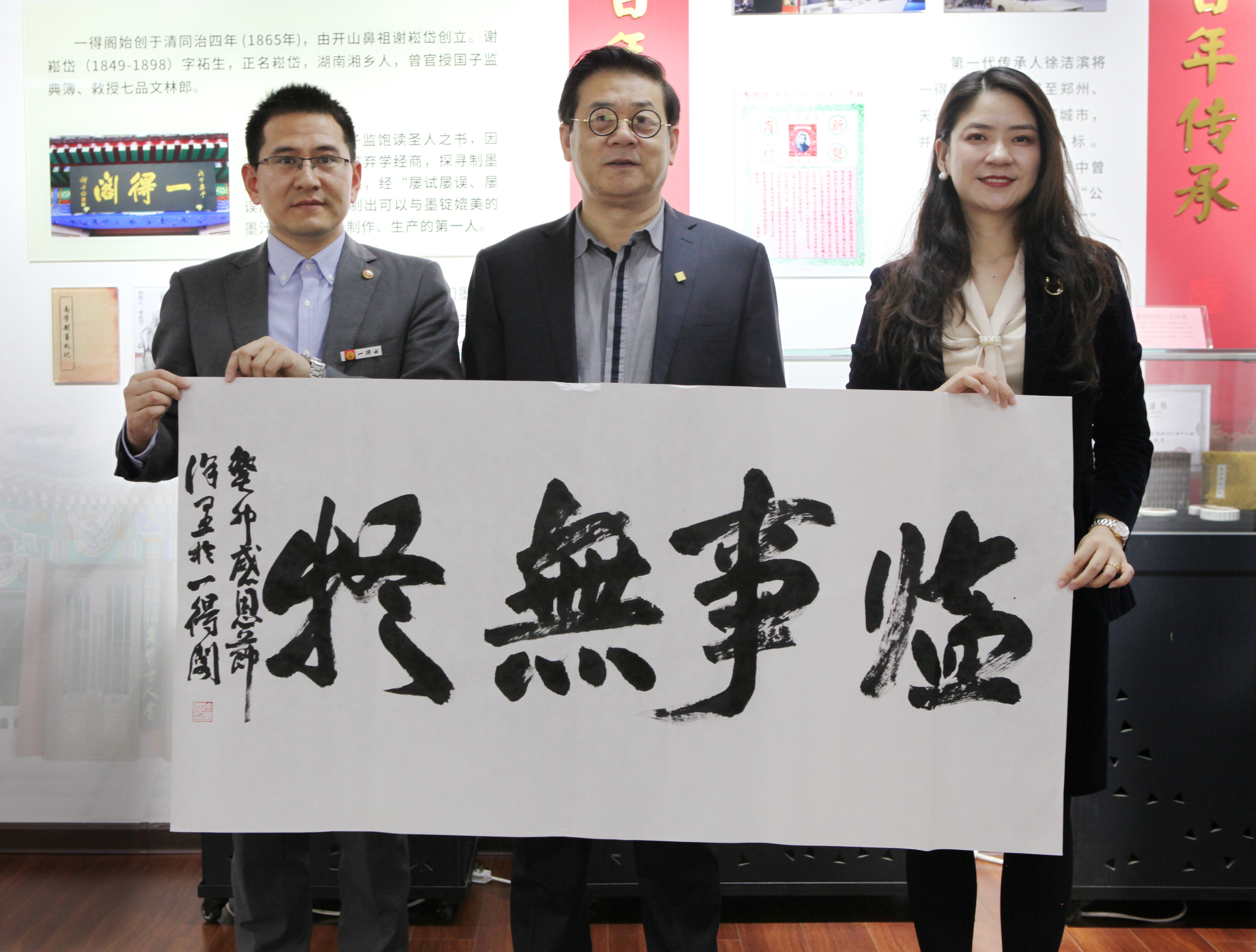 22日下午,在一得閣藝術中心四樓舉辦了非遺廟會走出國門溝通交流會。西城區(qū)文物保護管理中心黨組成員、副主任吳英茂,西城區(qū)文物保護管理中心非遺保護科長楊飛,北美藝術家協(xié)會會長、北美書畫研究院院長沈震敏,北美藝術家協(xié)會副會長、北美書畫研究院副院長鴻石,北美書畫研究院副院長Nicolette女士,以及北京一得閣墨業(yè)有限責任公司總經理白冰、北京一得閣銷售有限責任公司總經理魏光耀、北京一得閣書畫院執(zhí)行院長馬婷婷等人出席會議。