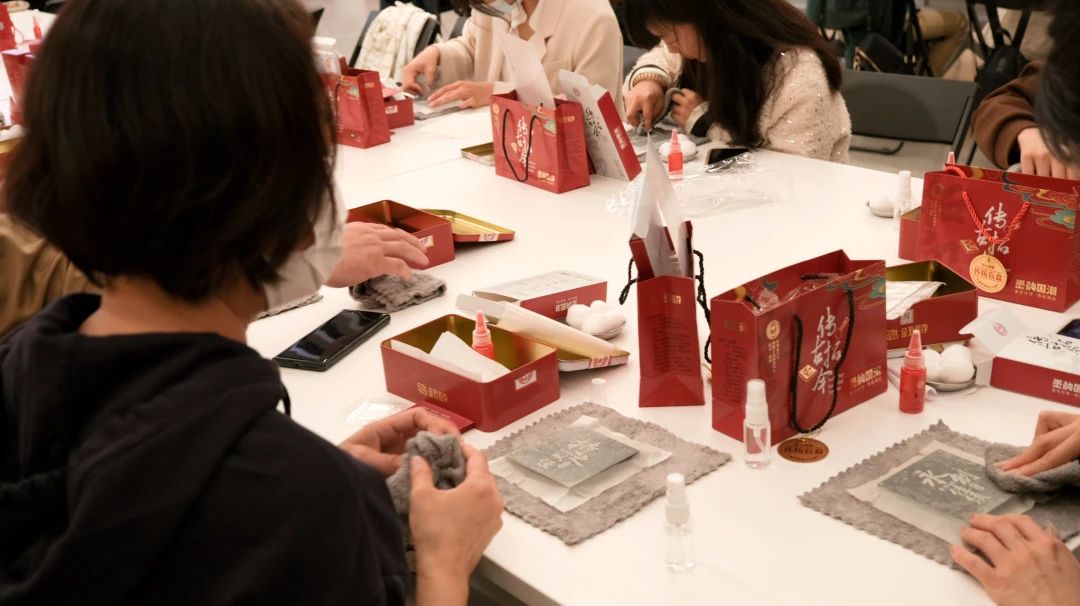 一得閣為此次講座特別準(zhǔn)備了“墨韻國潮傳古拓今拓印套裝”,魏老師帶領(lǐng)大家體驗(yàn)拓印的獨(dú)特魅力。一得閣拓印套裝除包含拓印體驗(yàn)所需的全部道具外,更有特制的數(shù)十款圖案拓版盲盒,活動(dòng)現(xiàn)場大家還可以交換拓版,制作不同樣式的拓片。