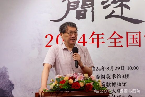 8月29日上午,由甘肅簡牘博物館、西北師范大學(xué)、甘肅省書法家協(xié)會主辦,一得閣美術(shù)館承辦的“簡述中國——2024年全國簡牘書法大展”在北京一得閣美術(shù)館開幕。中國文聯(lián)副主席、西泠印社副社長兼秘書長陳振濂,中國藝術(shù)研究院原院長、中國非遺中心原主任連輯,中國美術(shù)館副館長、中國美協(xié)理事潘義奎,北京市工商聯(lián)副主席李明,北京畫院副院長、藝委會副主任、中國美協(xié)理事莫曉松,西北師范大學(xué)黨委書記賈寧,西北師范大學(xué)副校長閻巖,甘肅省文聯(lián)副主席、甘肅畫院院長王萬成等出席開幕式。開幕式由中國書協(xié)理事、甘肅省文聯(lián)黨組成員、副主席陳新長主持。