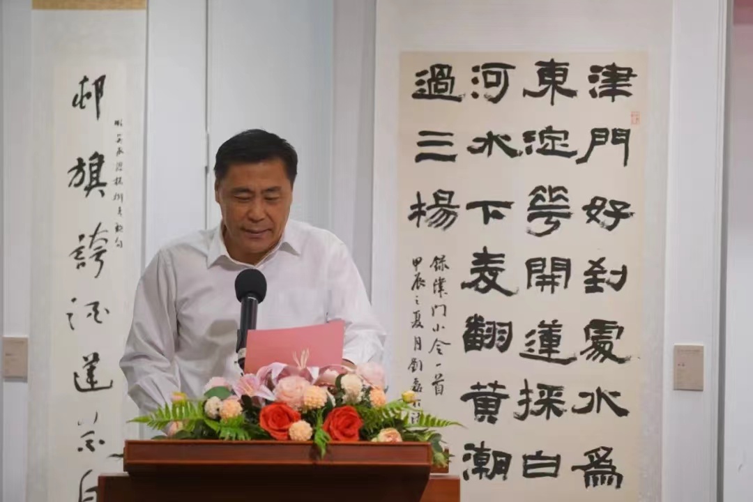 冷萬里副主席對此次展覽作品的主題以及專業(yè)性給予高度評價,并為與京津冀三地的書法家與書法愛好者因書法相聚一得閣美術(shù)館共同為祖國慶生表示榮幸,對西城區(qū)文化館為此次展覽辛苦籌備與付出的工作人員表示感謝,最后祝賀展覽成功開展。