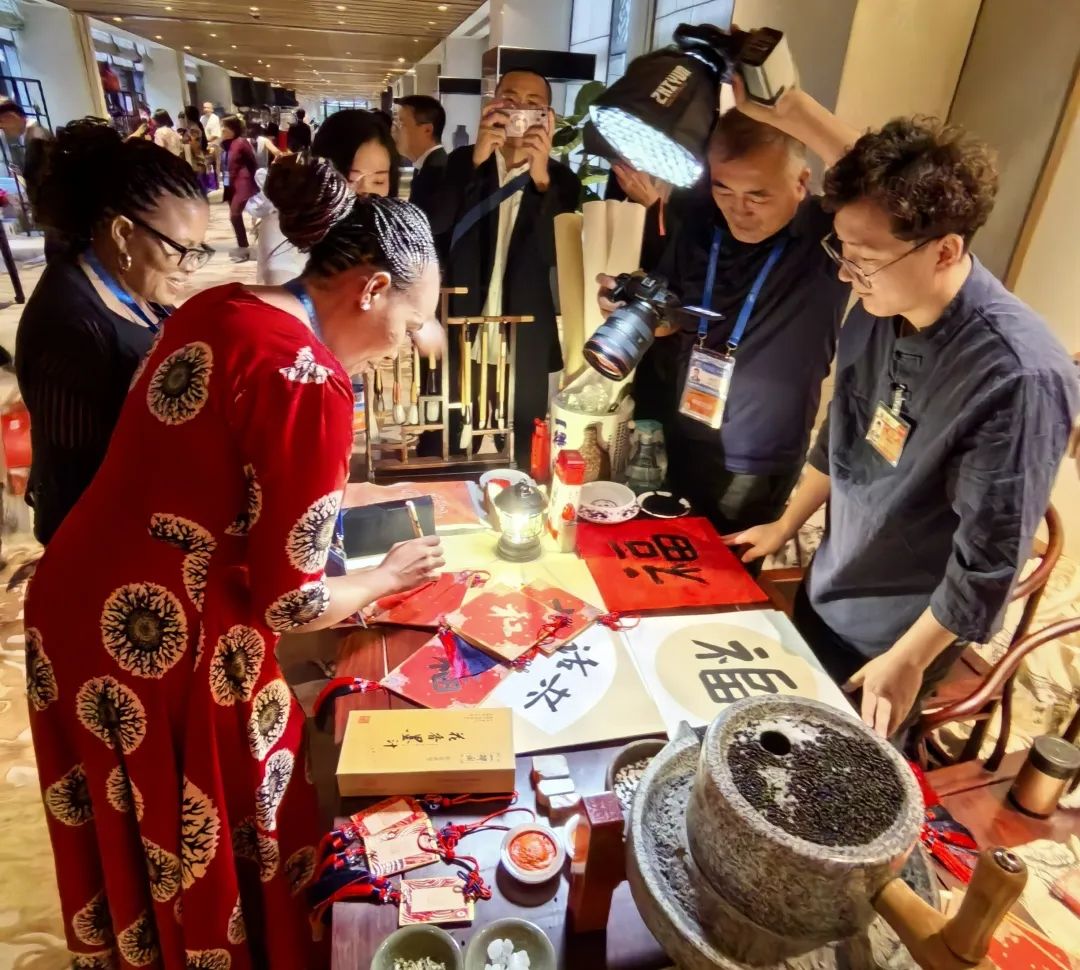 一得閣以實(shí)際行動展示了歷久彌新的工匠精神。活動現(xiàn)場,一得閣通過原材料展示、拓印互動、書法體驗(yàn)等豐富的形式,向非洲友人及各界人士交流中國非遺文化。其精湛的技藝和深厚的文化底蘊(yùn),不僅擦亮了“北京服務(wù)”的金字招牌,更講述了“真實(shí)親誠”的中非友誼故事。
